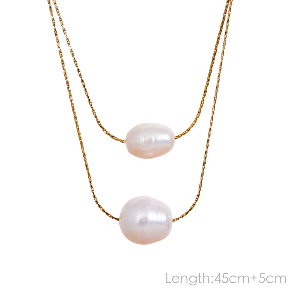 Exquisite necklace featuring natural pearls and a stainless steel chain. Tarnish-free and designed for chic minimalist looks.