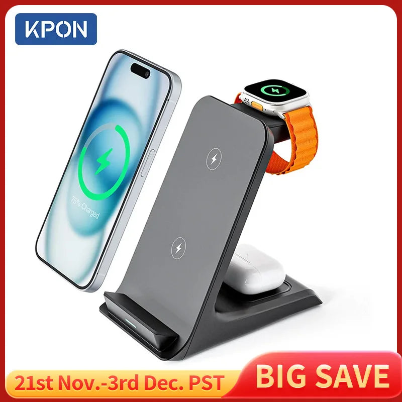 Simplify charging with this 3-in-1 dock. Fast charges your iPhone, Apple Watch, and AirPods simultaneously in a sleek, organized design.